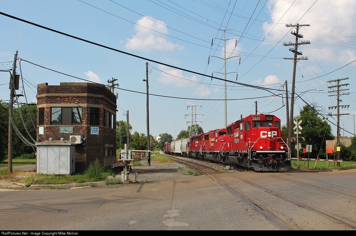 Passing under power lines that almost mimic the track layout of Delray, CP T-40 heads back to Windsor, Ontario after interchanging with NS at Oakwood Yard. Delray is one of the last manned interlocking towers left in service in the US and I can only imagine its days are numbered with looming PTC installations but I don't know for certain. One can see several railroads converging at this location. CP, CN, NS, Conrail Shared Assets, CSX, and The Delray Connecting Railroad all pass through the junction along with several yards in close proximity (CSX Rougemere, NS Oakwood, and CR Livernois Yards).