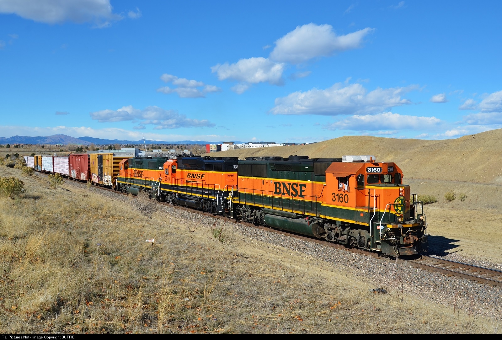 BNSF 3160 (GP50) leads a freight heading to Broomfield, Colorado.