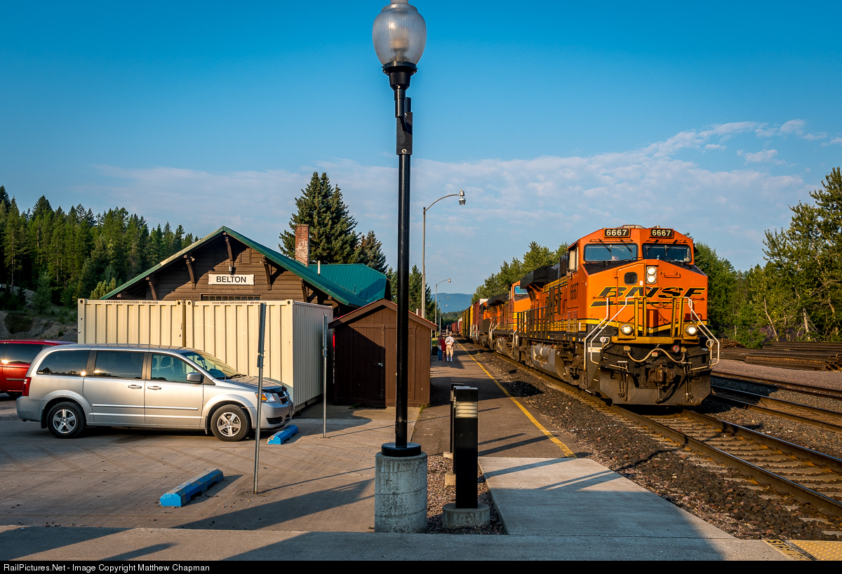 On this beautiful morning, my wife and I have just arrived at the West Glacier Amtrak Station, labeled "Belton" for some reason, to catch the Empire Builder back to Minneapolis/St. Paul.