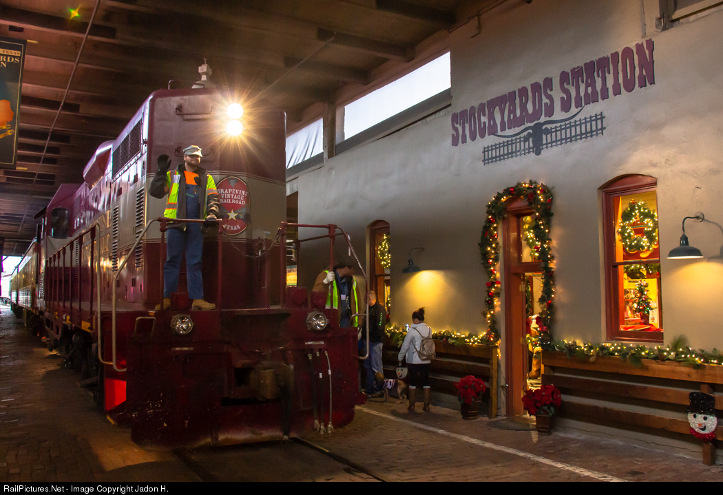 | After letting the passengers explore the historic stockyards, the Grapevine Vintage Railroad rolls back into the station/shopping strip building to take on passengers before heading back to Grapevine on one of the final trips to Fort Worth during 2018. Two weeks after the train will begin their special Christmas trip with five runs to Ft. Worth after Christmas. |
