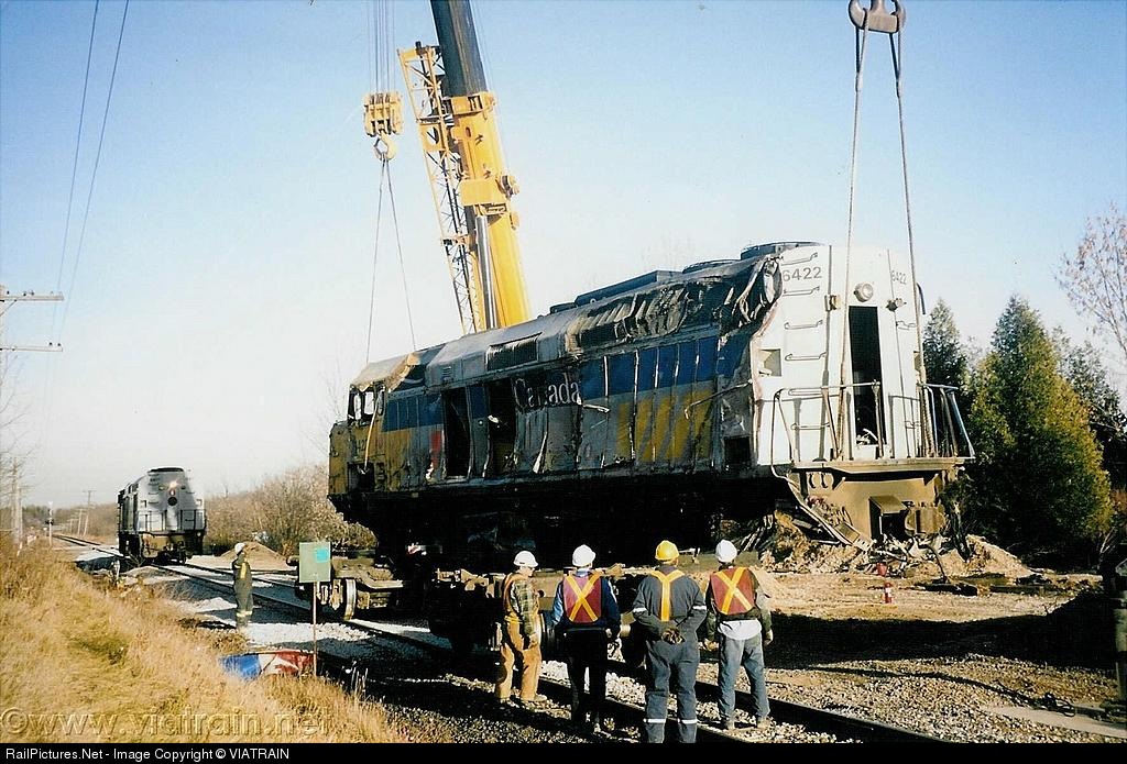 VIA 6422's very last trip on the rails ended November 9th 1999 after hitting a Quarry Truck in Acton. The crew working to clean up the train look in disbelief from the horrifying wreck. To see more pictures