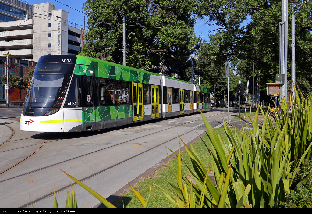 E class tram 6034 running an altered route 11 service prepares to terminate near St.Vincents Plaza.