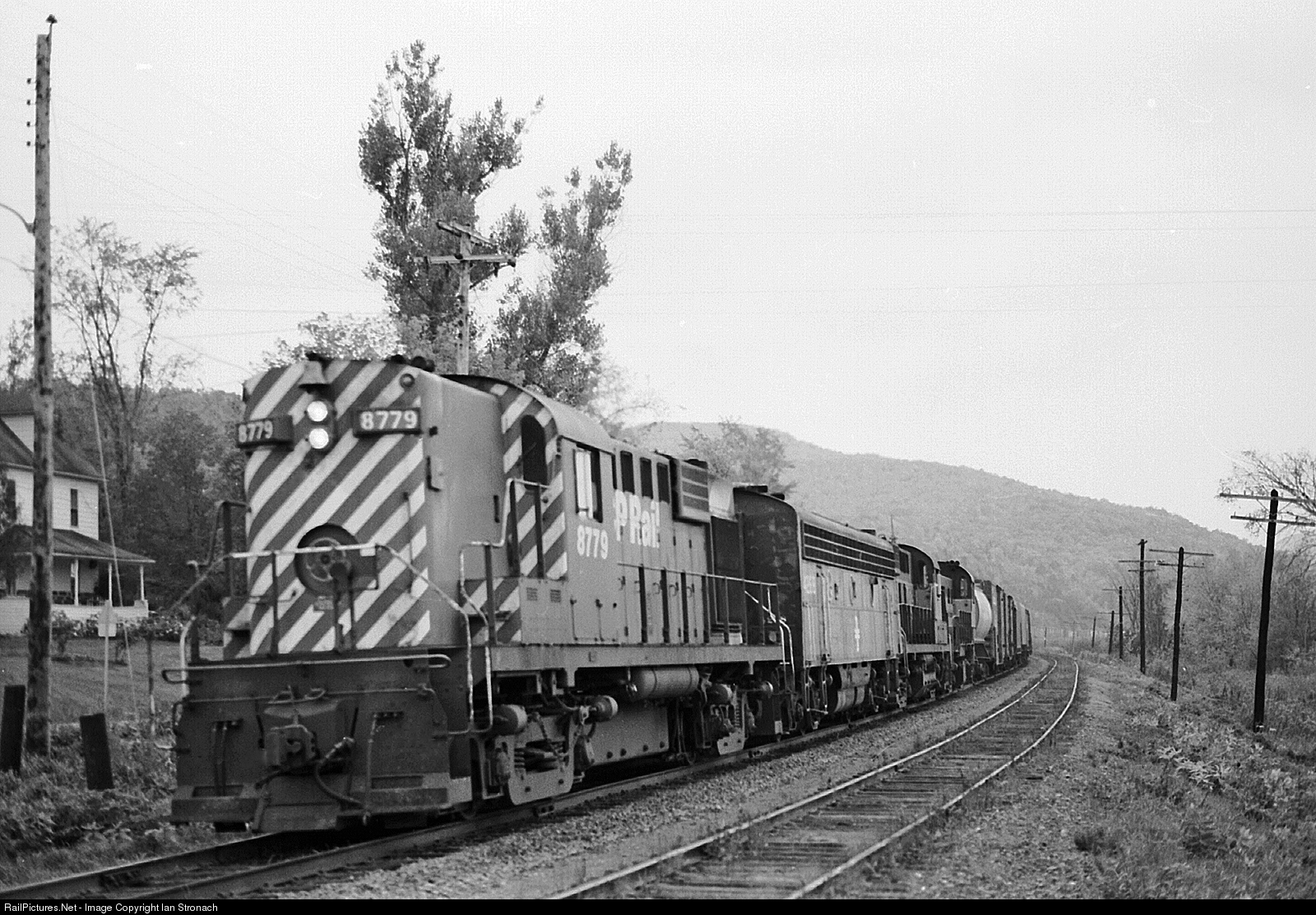 | Train 904 with an interesting RS-18/F7B/RS-10/RS-23 lashup slows to a stop while holding the main for a meet. Train 904 was a hot CP freight that ran from Windsor, Ontario to Wells River, VT where it became B&M 8904 to complete its run to White River Junction on B&M trackage. |