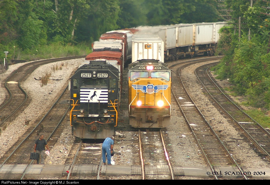 UP ILCNS approaches Neptune Street for a transfer to the NS as the outbound crew prepares for the switch.