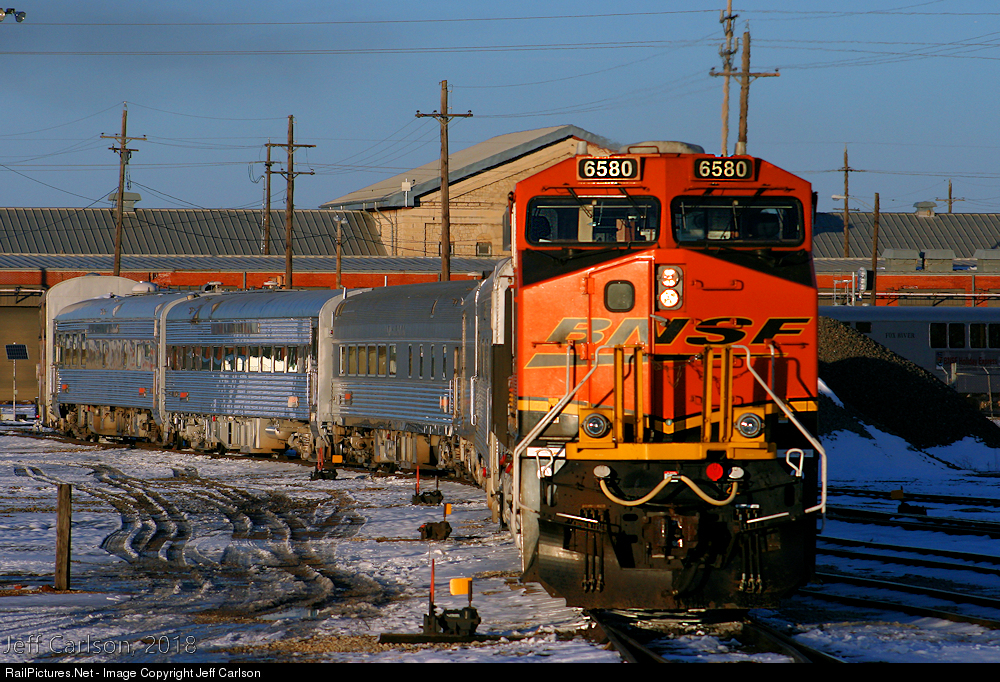 BNSF 6580 brings up the markers on their 2018 Holiday Express, as it departs from Topeka. This 15 car train had engines on either end of it (5544 is the other unit), and will be touring the system giving rides to employees and their families. On this day, the train ran as the O-TOPOMA, running to Omaha, via Kansas City.