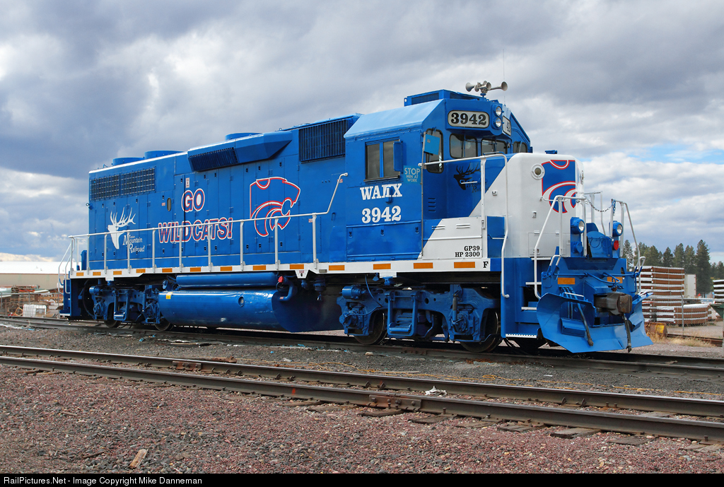 RailPictures.Net Photo: WAMX 3942 Mission Mountain EMD GP39-2 at Columbia Falls, Montana by Mike Danneman