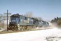 A trio of Conrail C30-7As roll west through Wellesley, MA, on the former Boston & Albany with piggybacker TV-9 out of Boston's Beacon Park Yard. This was once four-track territory.