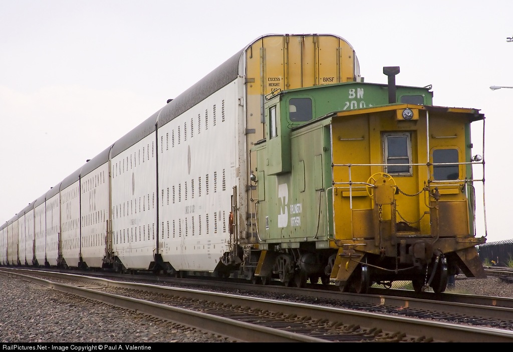 Seeing a caboose on the end of a string of cars is a very rare sight on the BNSF in 2004!