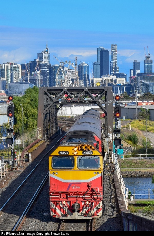 | V/Line/PTV's N453 powers towards the Bunbury St Tunnel, Footscray with a Down Albury Passenger Service...