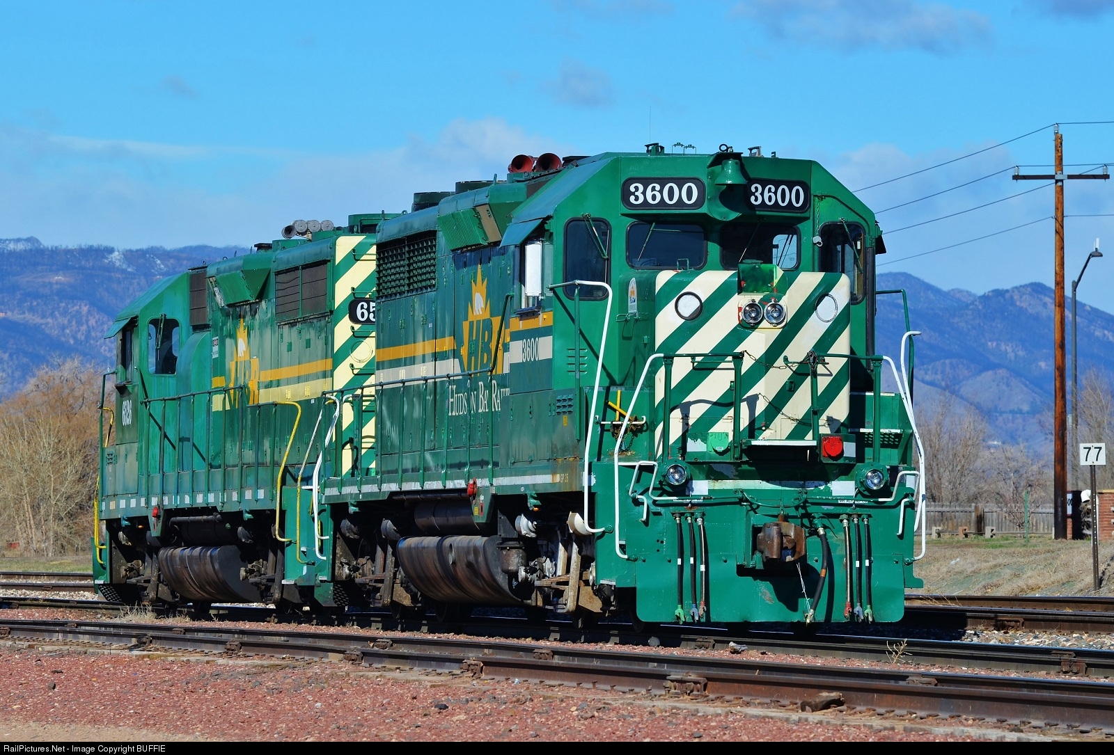 These two Hudson Bay Railway engines are long time cousins, having both been built for the Southern Pacific. HBRY 3600 started life in 1964 as a GP35 with the SP, and HBRY 6526 was built in 1963 for the Southern Pacific as a GP35, and later rebuilt as a GP35M.