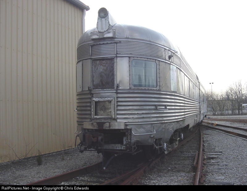 Silver fountain on a cold winter evening. The car is being restored by Queen City Rail Car, after sitting 20 plus years of sitting in Cincinnati.