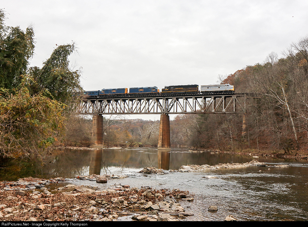 | CRR 800 leads CSX P901 south into Kingsport, Tennessee over the Holston River. Here the excursion ended and everyone went home happy after a memorable trip! |
