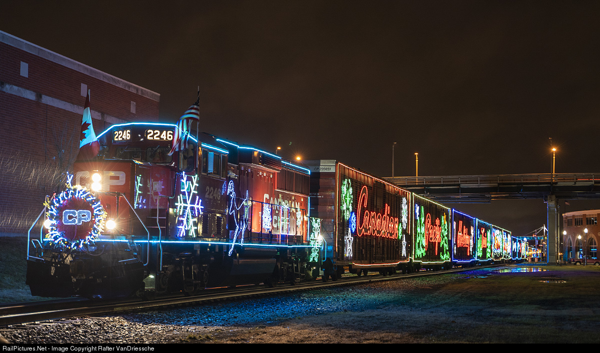 The Canadian Pacific Holiday Train stops to change crews and board passengers for the trip to Muscatine.