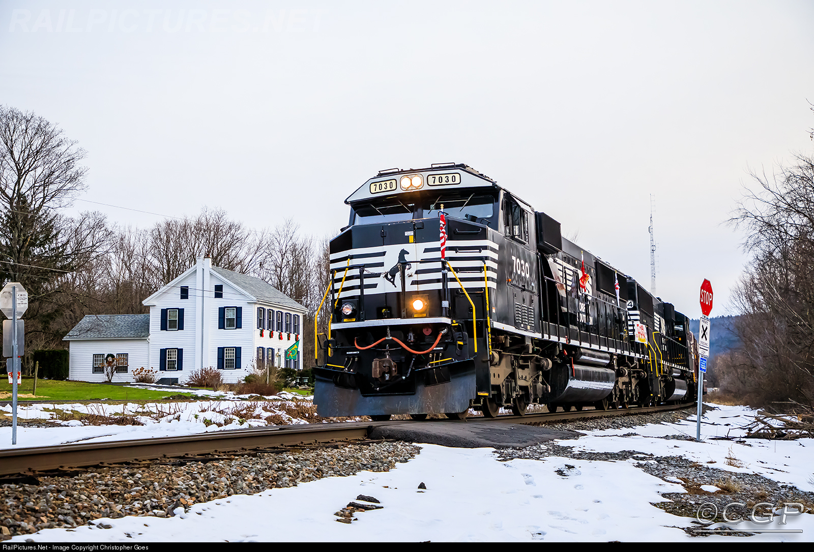 | NS 7030 proudly leads the 2018 Toys For Tots Train North towards it's last stop of the day in Delanson, seen here coming off the "S" curve in Central Bridge, NY |