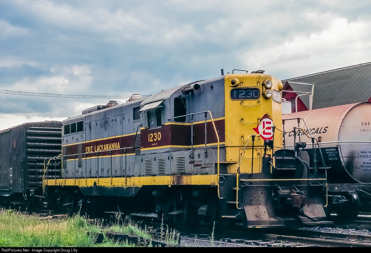 Conrail is well over a year old, but a lot of operational changes are still in the planning stages. The former EL Lackawanna Cutoff is still intact, and through trains still pass through East Stroudsburg, Pennsylvania. Here the local switcher, Erie Lackawanna GP7 1230, idles directly across from the station.