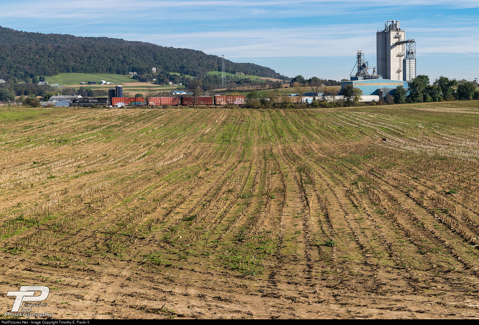 The Everett Railroad's thrice-weekly (M-W-F) frieght train switches out the Cargill plant outside Martinsburg. Motive power has been this unabashedly ex-NS GE for about a year now, with the GP16s mostly kept in reserve.