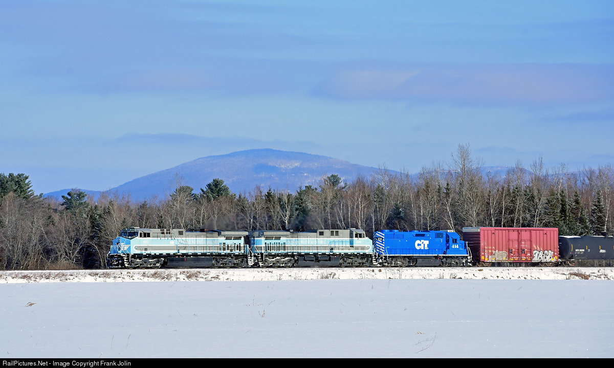 Central Maine & Quebec Job 1 is heading west through Adamsville on a cold December morning.