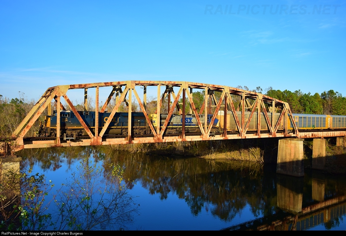 | At one time an autorack train was a daily site on the CSX Bowline but now they are a rarity. Due to a derailment on the Fitzgerald Sub, an X220 travels across the Dothan Subdivision and crosses the Chattahoochee River that creates the Georgia/Alabama border. |