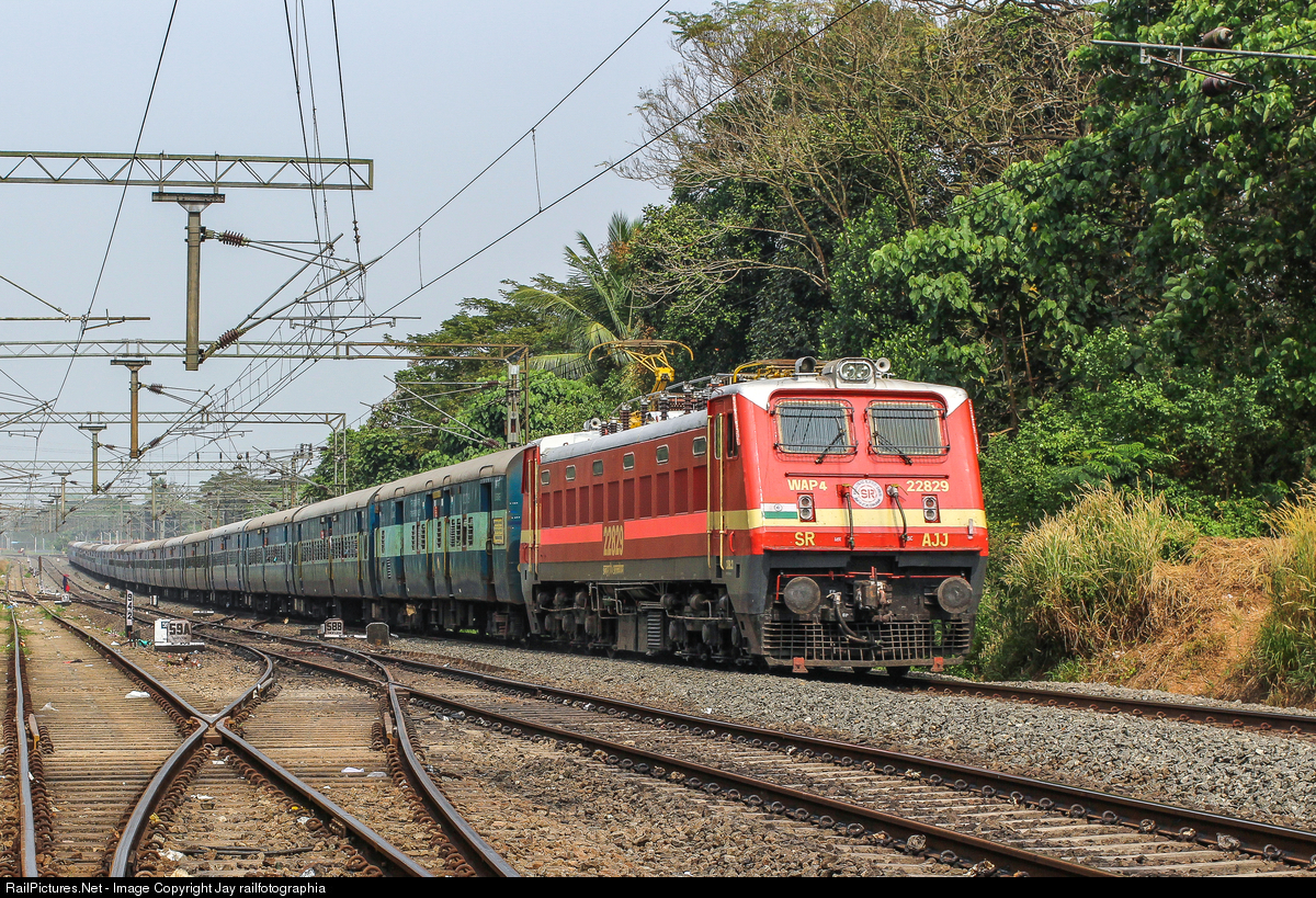 After rolling down, ARAKKONAM WAP-4 climbing gradient with Parasuram Express at Kalamassery, a section filled with UP and DOWN gradients