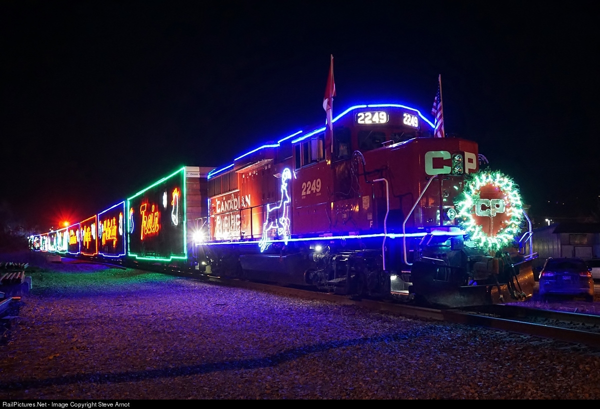 CP 2249 sits at the west end of Salmon Arm with the 2018 Holiday Train.