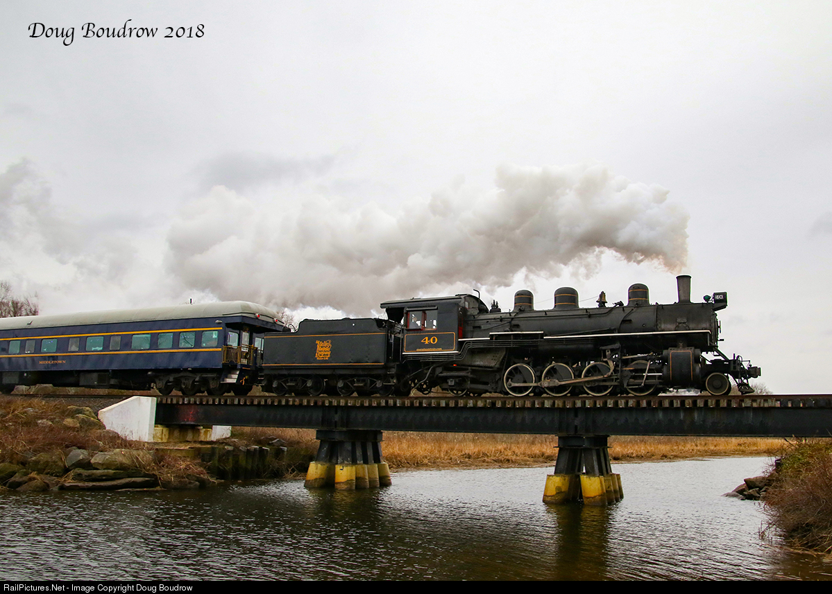 | The Connecticut Valley Railroad, also known as the Essex Steam Train & Riverboat runs a number of Christmas trains each season. On weekends during the season, the railroad is running trains for most of the day using all three operable steam locomotives on the roster. Valley #40 is 1920 American Locomotives Works product built at the Dunkirk, NY plant. Here it leads the 1:00 Santa Special across Deep River Creek. |