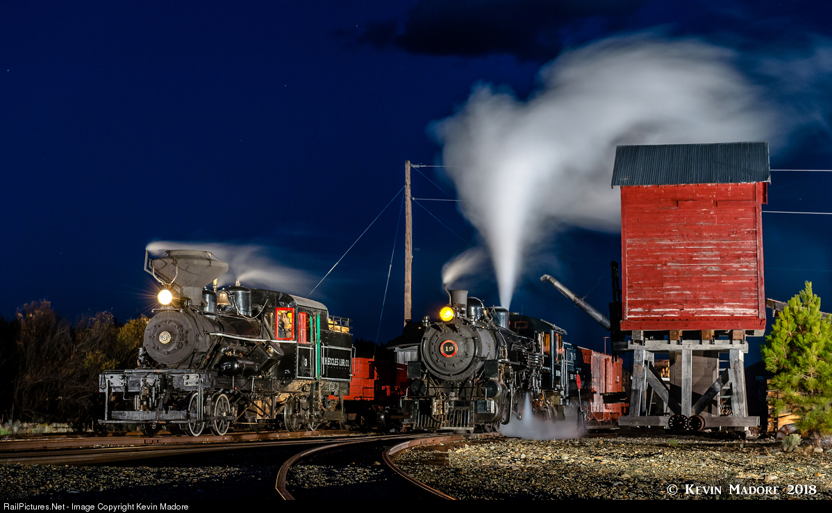 The 2018 Sumpter Valley Railroad Fall Photo Train offered a relatively rare opportunity to get a few night photos in the yard. The event does not normally include a night session, but this year, Photographer Pete Lerro happened to be attending as a paid participant, and had brought some hot lights with him. At the conclusion of Saturday's daytime shoot, the railroad agreed to position and leave the two locomotives at the McEwen Tank for the night. Pete deployed his lights around the scene and about 1/3 of the participants opted to stay until after dark to photograph the scene and take part in a portrait session. Although it was chilly this evening, it was definitely worth sticking around.