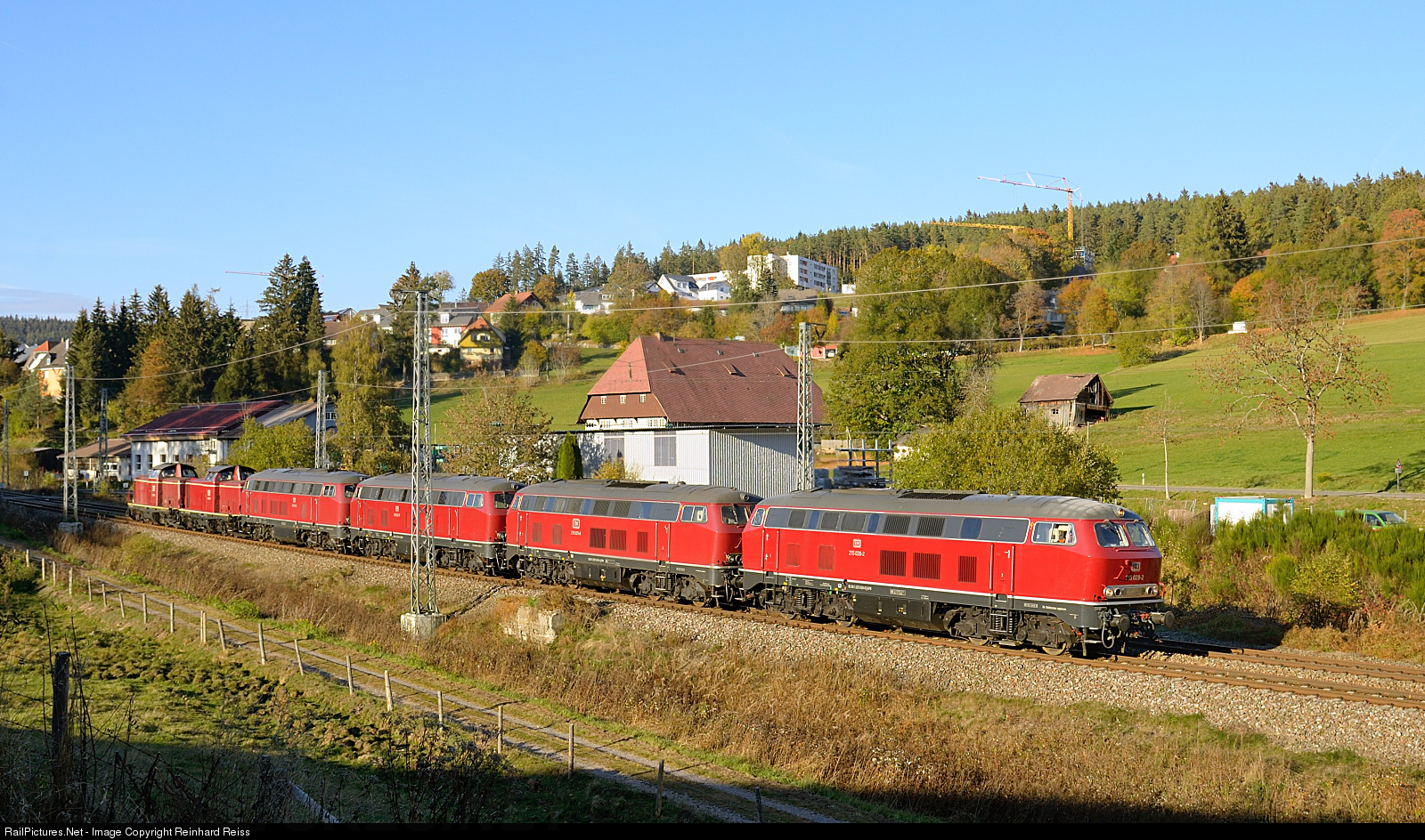 | 215 028, 025, 023 and 021 as well as 211 051 and 212 370 pass Sommerau on the way from Oberhausen to Rottweil. |