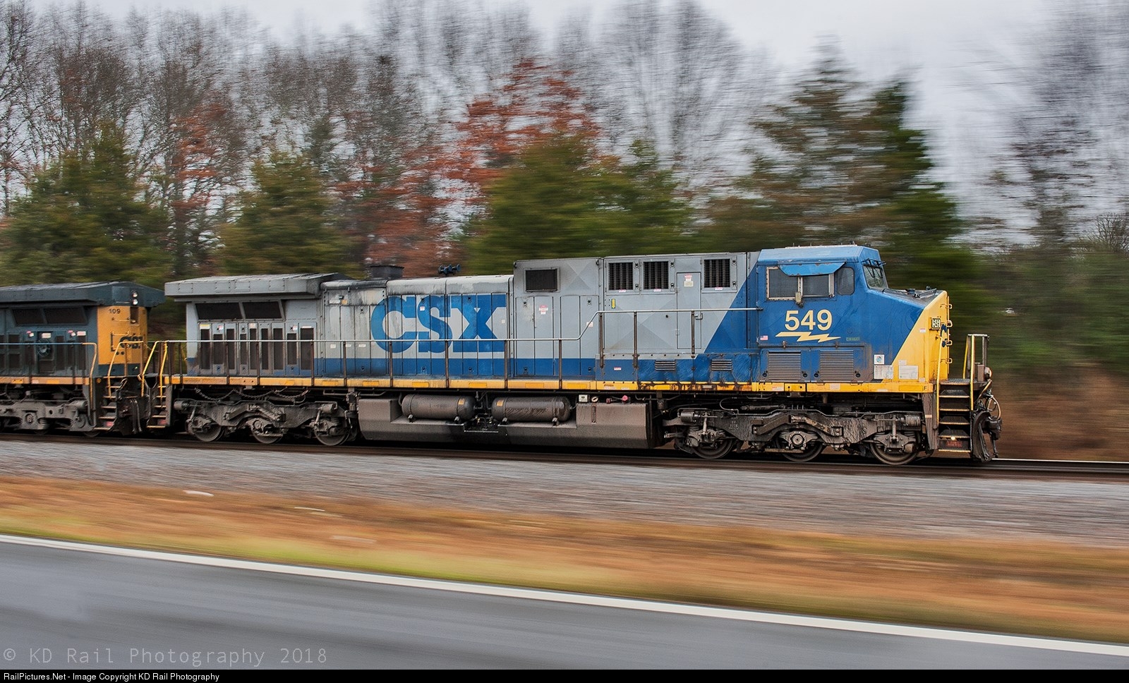 A 500 series CSX AC4400, led CSX Q143-22 (North Baltimore,OH-Jacksonville,FL) south as the long intermodal train conquered the unforgiving 7-Mile Hill on the outskirts of the town of Tullahoma, TN (MP J-67.0 NE Tullahoma). With wet rails the train had issues 30 miles north trying to talk on the foot hills of Middle Tennessee in the cold rain. It's very nice once again to catch a YN2 motor on the head of a train, cause this paint scheme is not long for the world.
