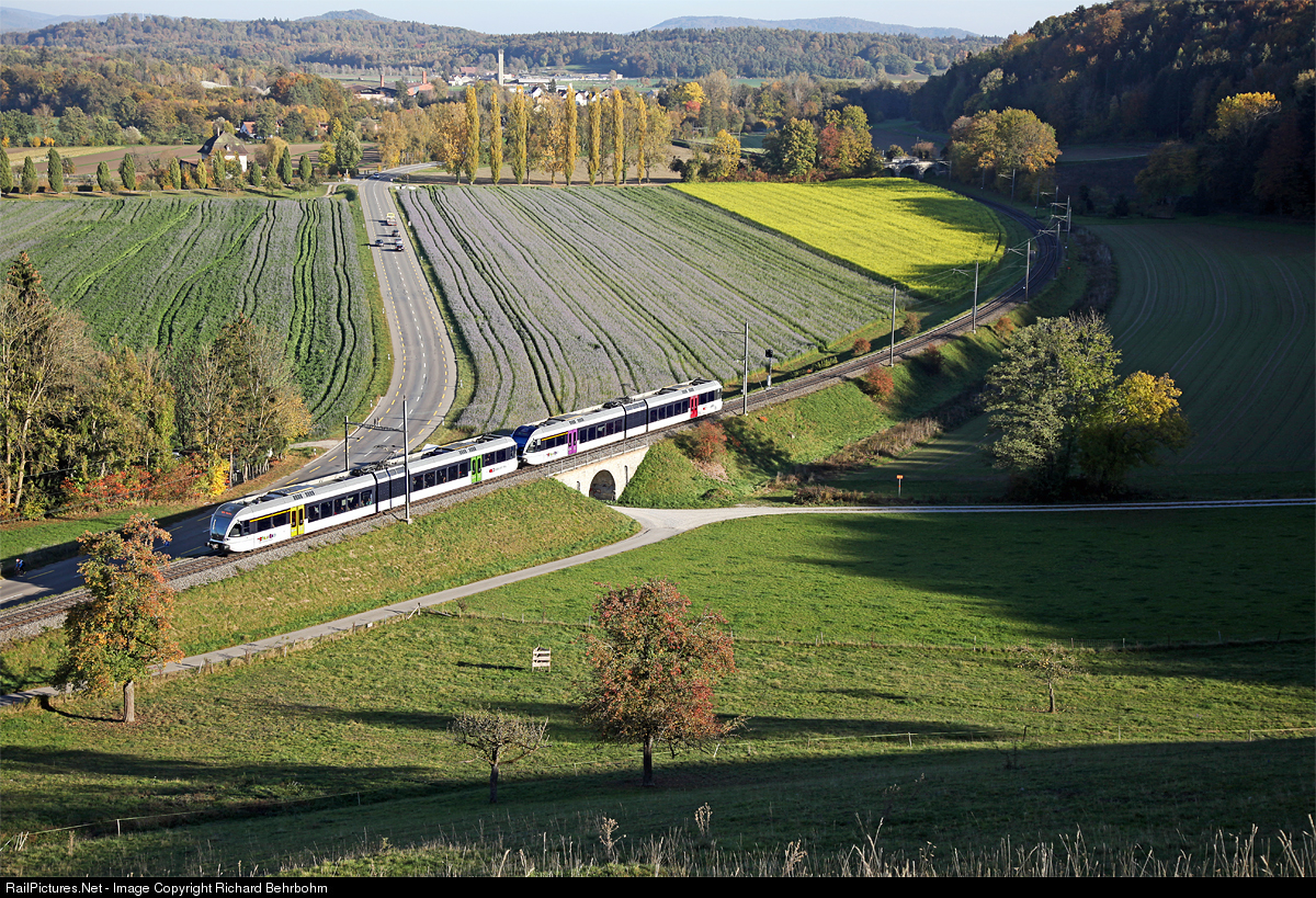 | Two Thurbo AK (short version) are en route from Schaffhausen to Nesslau-Neu St. Johann. |