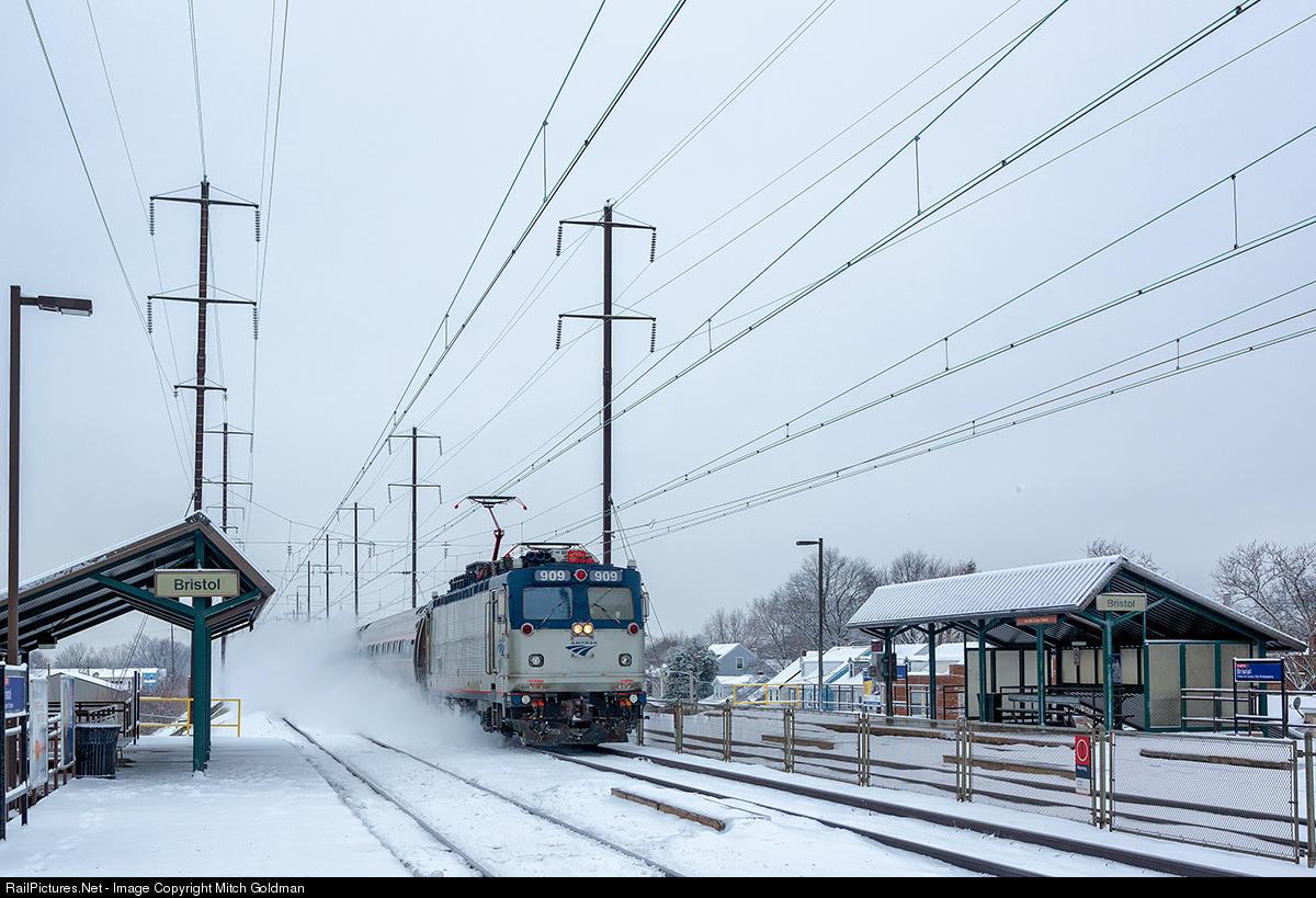 RailPictures.Net Photo: AMTK 909 Amtrak ASEA AEM-7 at Bristol, Pennsylvania by Mitch Goldman