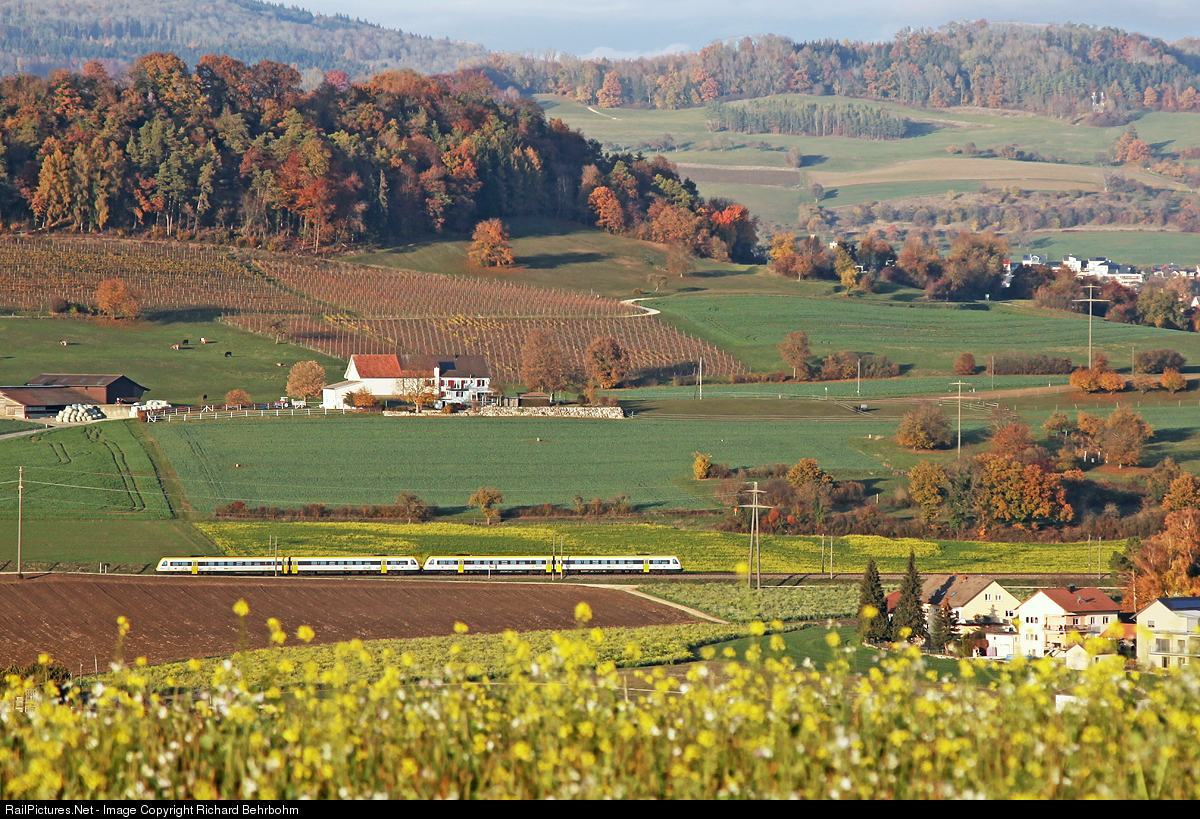 Two VT 612 are en route Basel – Ulm. Railcars type VT 612 are equipped with tilt technology.