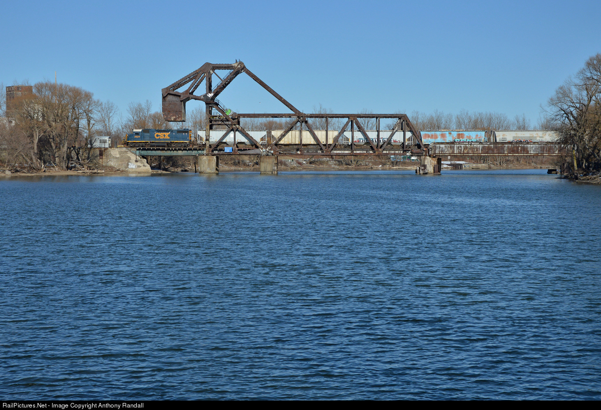 Y233 rolls across the drawspan at CP 1 with cars for Hamburg Street.