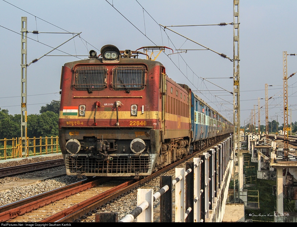 WAP-4 from Central Railway,Bhusawal loco shed powering 12679 Chennai-Coimbatore Intercity through Kushasthalai River Bridge at maximum permissible speed. |
