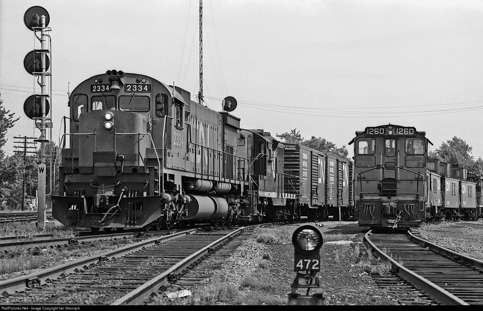 A westbound freight is making a lift from the small yard that is part of the west leg of the wye with the Valleyfield Sub. Coteau was and still is a busy junction on the CN Kingston Sub. where the Alexandria Sub. to Ottawa and the Valleyfield Sub. meet the mainline between Montreal and Toronto.