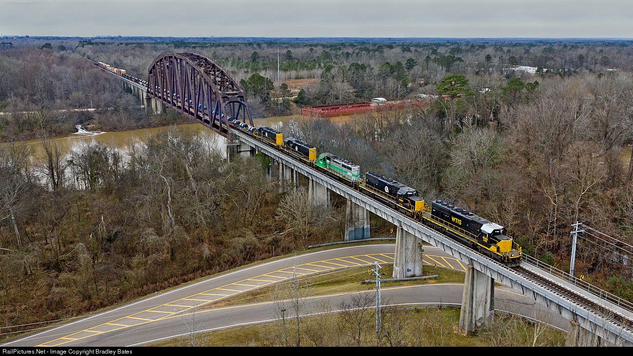 Alabama Southerns, Tuscaloosa, AL to Artesia, MS turn heads back east to Tuscaloosa, AL as they cross over the Tombigbee River in Columbus, MS.