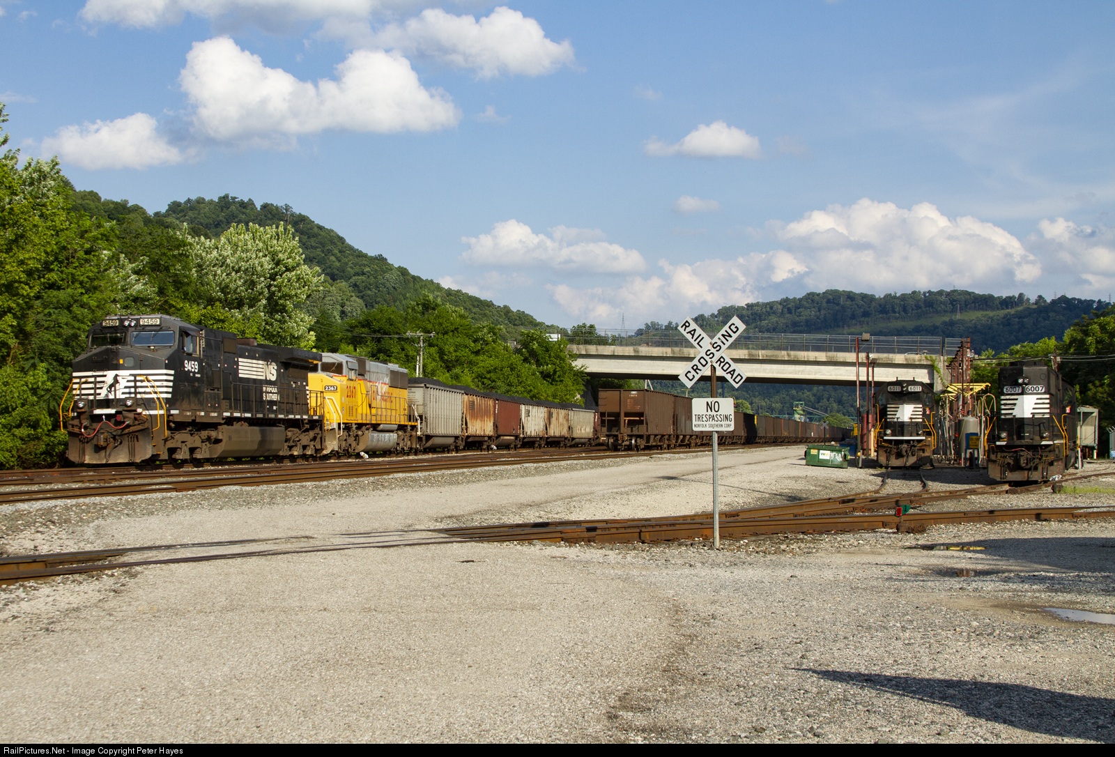 | Though the scene looks like Norfolk Southern, this is all Kanawha River Railroad's operation. Run-through power from NS and UP head up a coal train, while patched ex-NS SD60s wait to shove trains over the line south. |