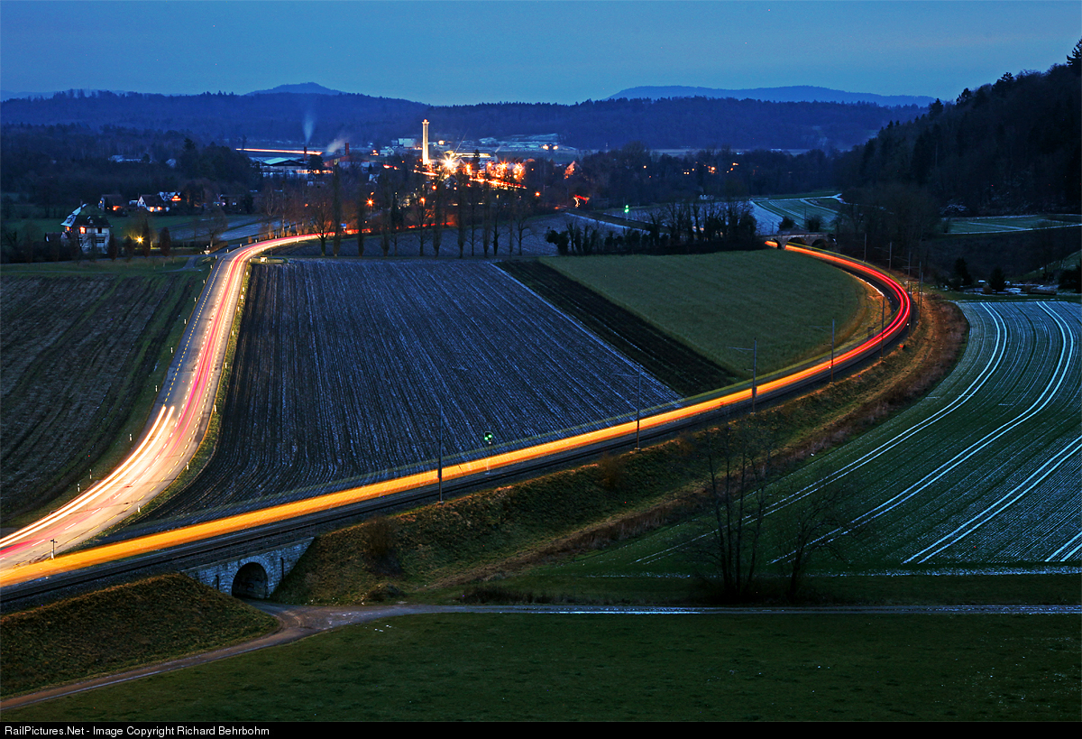 Long exposure photo of a Thurbo articulated lowfloor trainset en route Schaffhausen - St. Gallen.