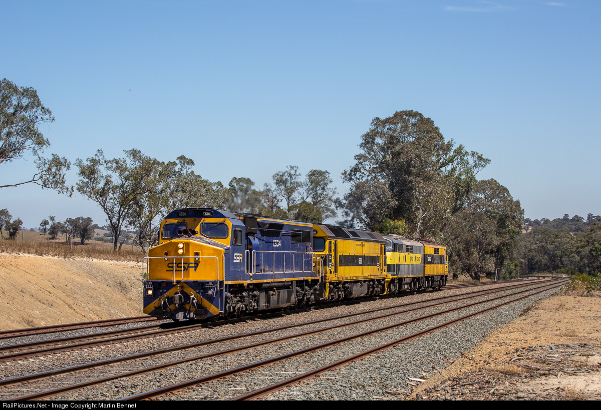 On the second day of 2019, SSR operated a light engine transfer from Appleton Dock in Melbourne, to Cootamundra in rural New South Wales. Here we see the eclectic collection of C504-G513-GM27-GM22 heading north near the Dockerys Road level crossing, Tallarook. SSR is known for operating some very 'experienced' locos, with the respective build dates of these ones being 1977, 1984, 1963 and 1962.