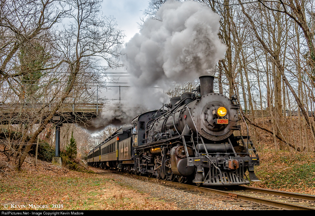 NPE-1, the first of 9 trips. It's just past 3PM and the first of 9 North Pole Express Trips out of Essex is heading north to North Chester behind Valley Railroad Mikado #3025, seen here passing under the Dennison Road overpass.