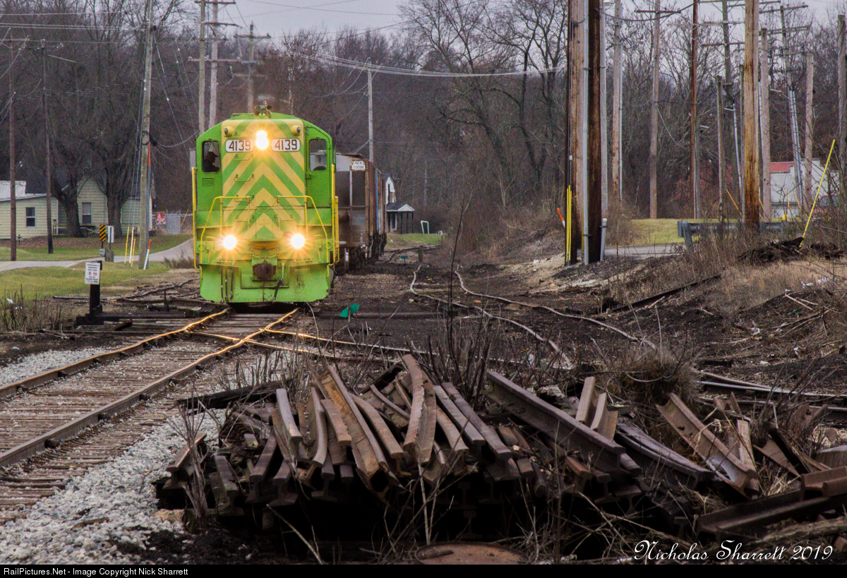 Having serviced a warehouse on the cities south side, the crew of the 4139 return to Harding Ave. to retrieve the rest of their train. This is the former location of the B&O depot where the DT&I pictured right merged into the B&O line to Portsmouth pictured left. The DT&I exercised trackage rights from here to Bloom Junction (South Webster).