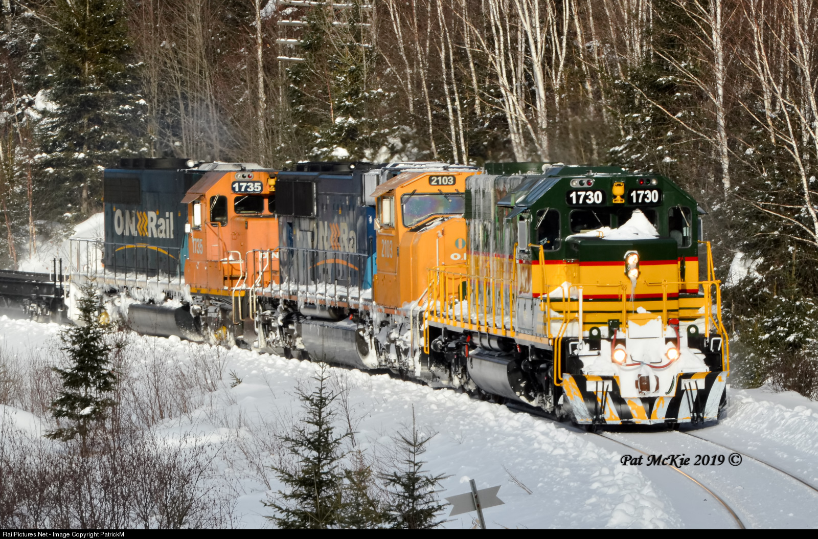 Hauling her first south bound train in the heritage paint scheme, ONT 1730 heads past mile 11.7 of the Temagami sub January 10th 2019