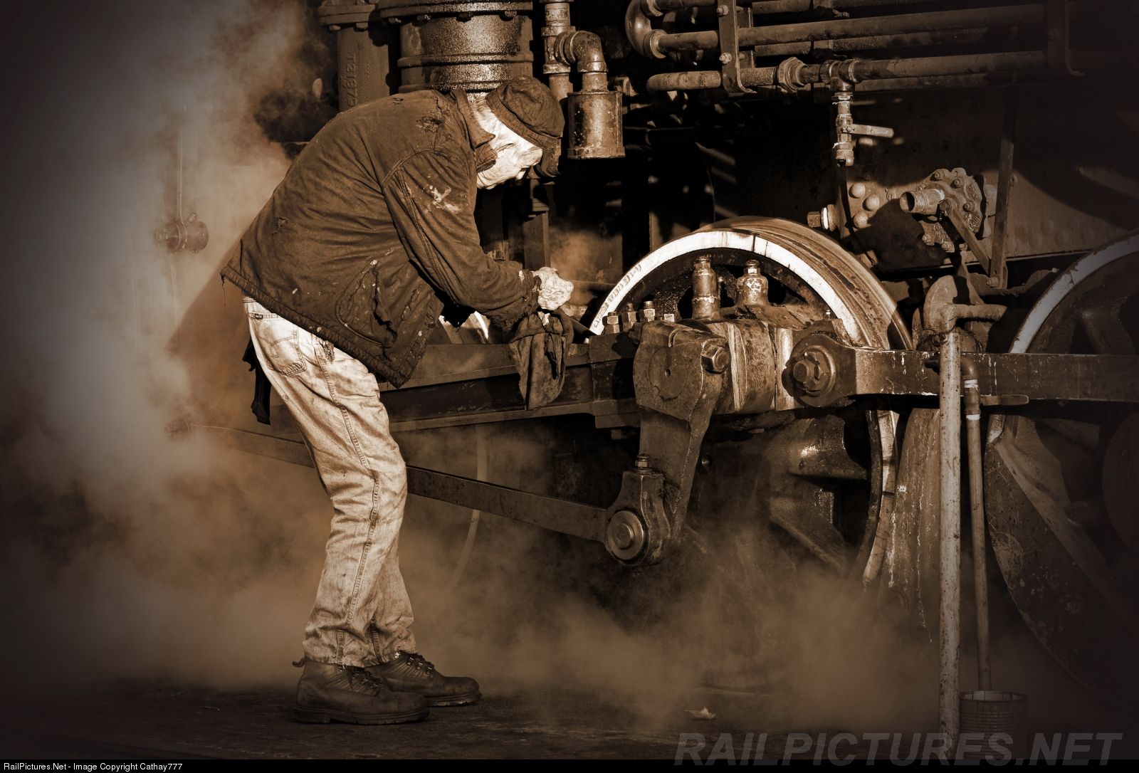 Photographs that depict train crews and other railroad employees at work. After all, the trains don't run themselves!