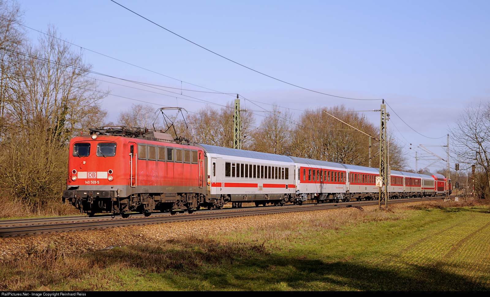 | 140 569 heads PbZ 2459 (Train for special purposes) from Karlsruhe to Bâle. The PbZ trains are used for transfer of passenger wagons and locomotives to their home destination after repair or overhaul. |