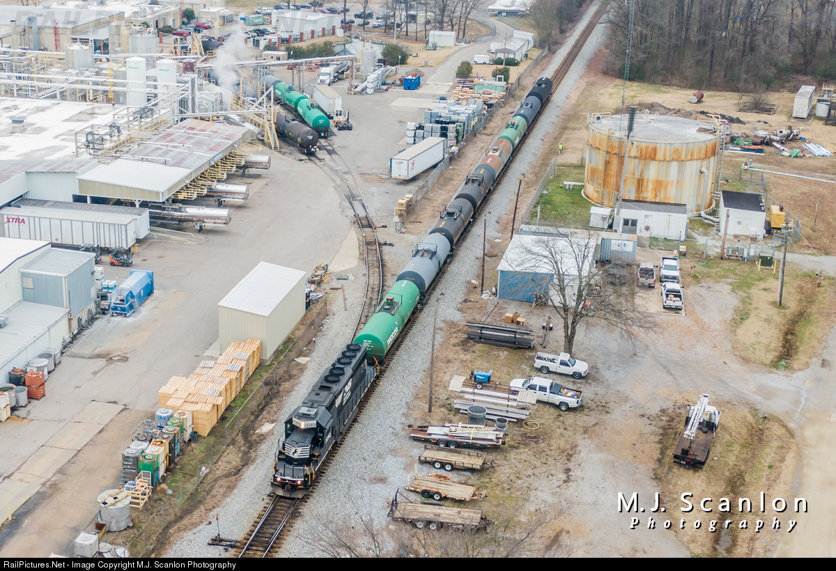 | Norfolk Southern local A02 has finished its work at AOC Aliancys in Piperton, Tennessee. This former Conrail unit (CR 6464) is preparing to head west back to Memphis with its tank cars on the Memphis District West End.