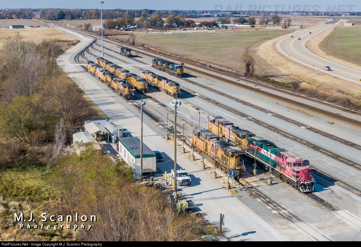 A Ferromex ES44AC is among the group of power on the west end of the Union Pacific Marion Intermodal Railport in Eastern Arkansas.