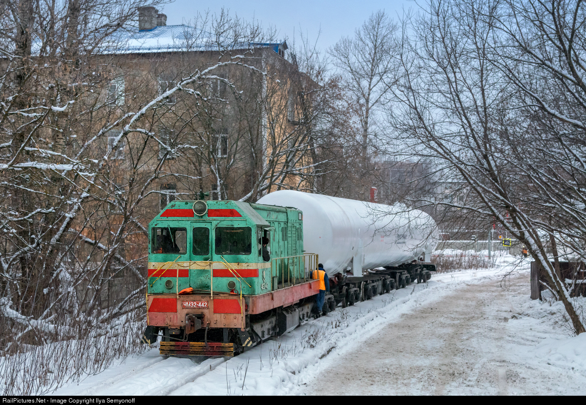 | ChME2 locomotive moves from "JSC KriogenMash" leading the largest hydrogen storage tank manufactured to work with 250 m3 liquid hydrogen. The length of the tank is more than 30 meters. It uses in space industry. |