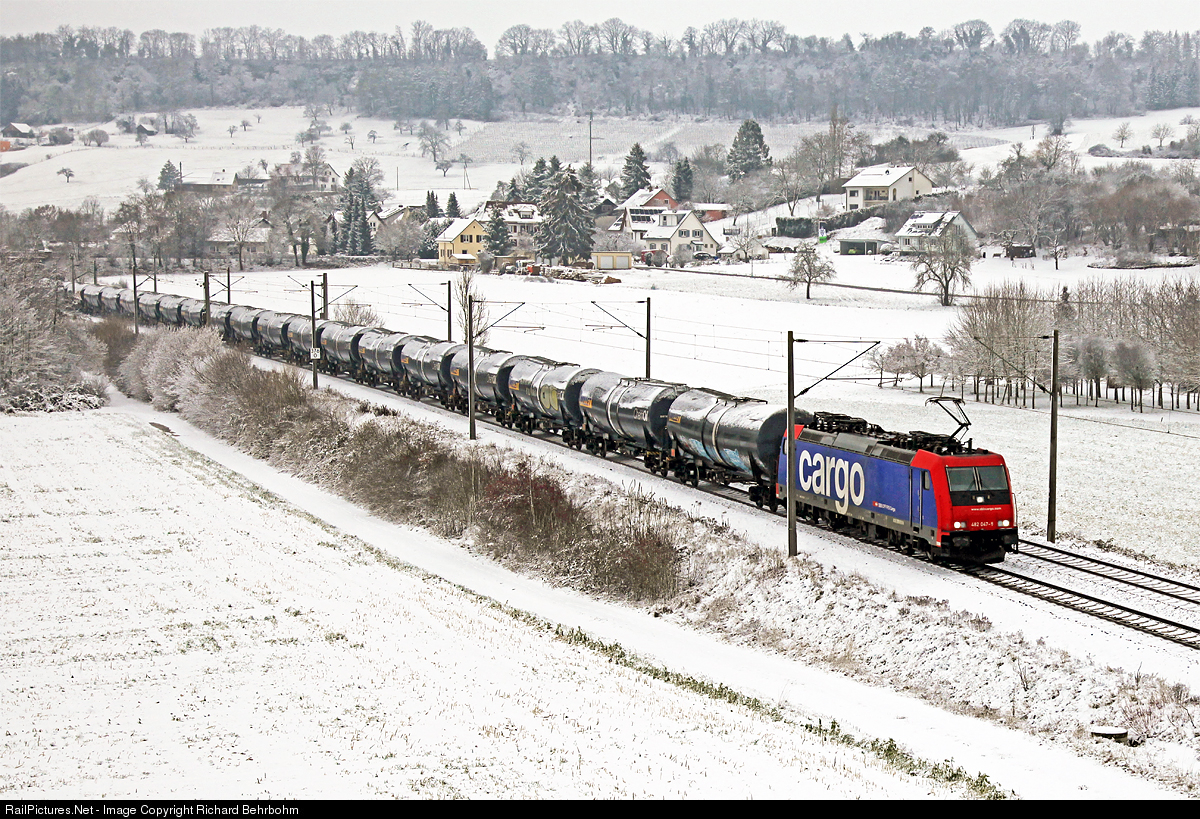 | Re 482 047 of SBB Cargo, rented to Widmer Rail Services AG, is pulling empty tank cars from Glattbrug (Switzerland) to Mainz (Germany). |