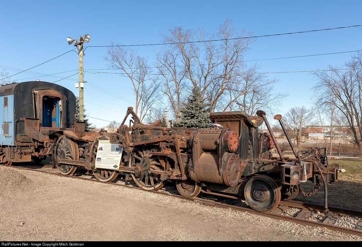 The frame and drive train for Chicago & North Western 4-6-0 R-1 No. 175 sits stored in the yard at the Steam Railroading Institute (Owners of Pere Marquette No. 1225) while restoration proceeds on the boiler which is located in the engine house just down the line.