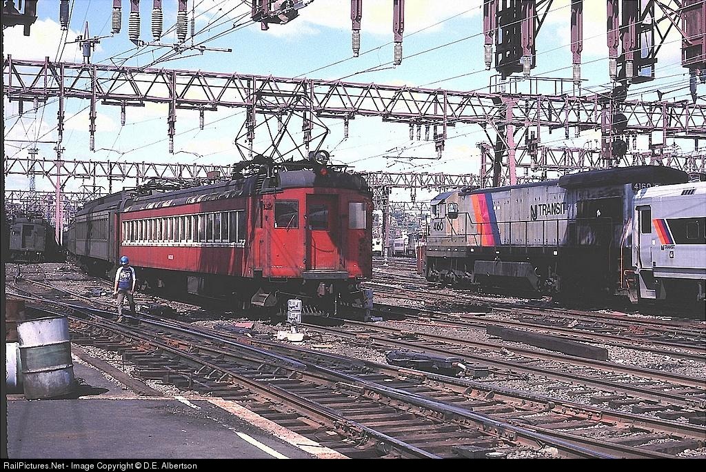 NJT 4160 heads West past former DL&W MUs on their last day of service. 24AUG84