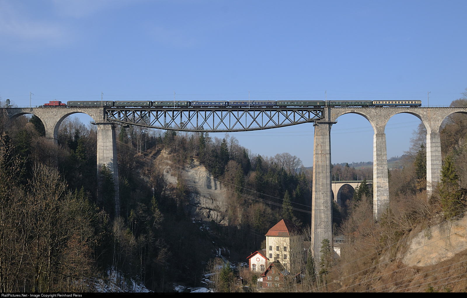 De 6/6 15301 from OeBB passes Sitter Viaduct with a charter train of "Ulmer Eisenbahnfreunde".